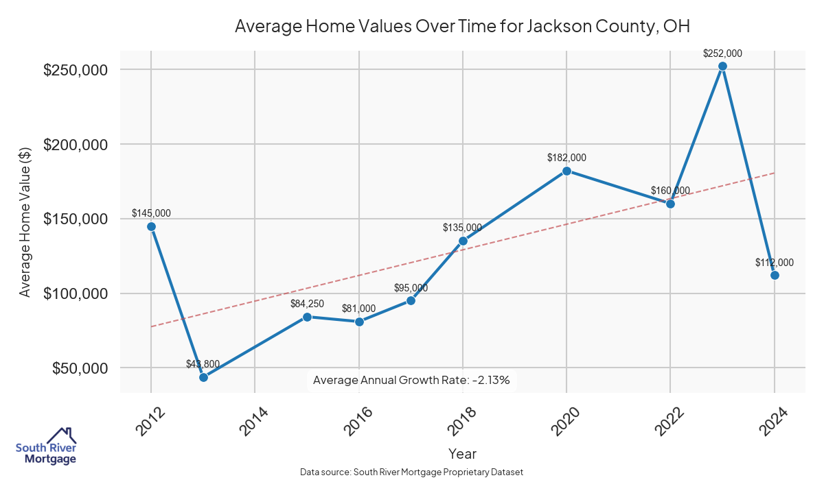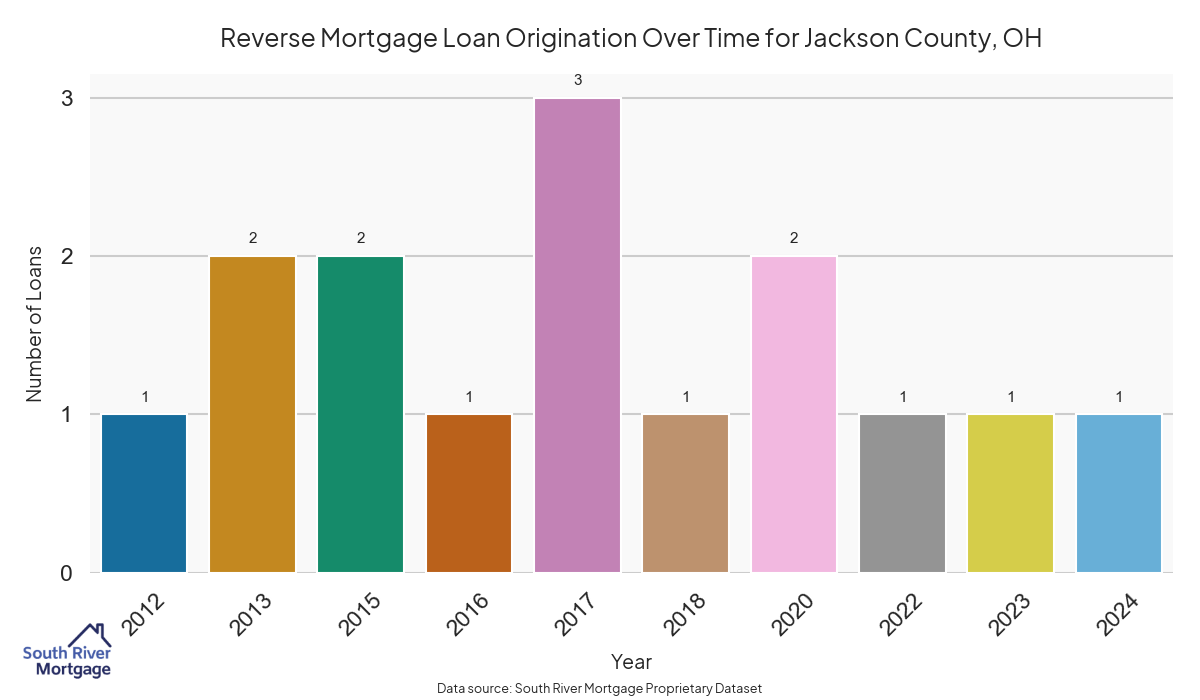 In 2024, there were 12 active reverse mortgage loans in Jackson County, Ohio. The average home value in Jackson County is $184,183.25.