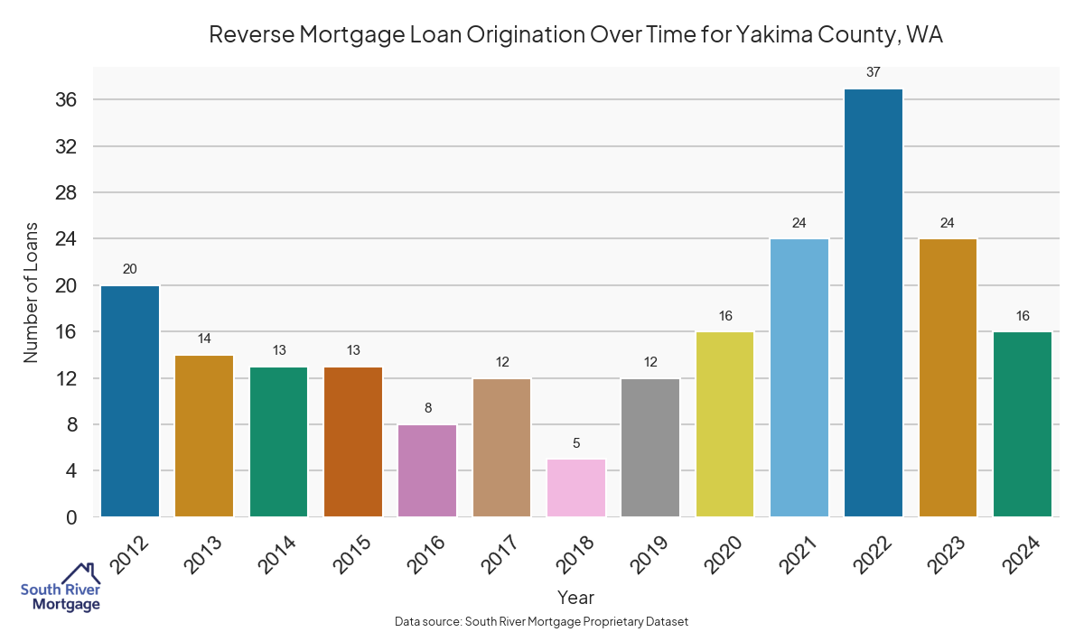 In 2024, there were 209 active reverse mortgage loans in Yakima County, Washington. The average home value in Yakima County is $369,000.39.