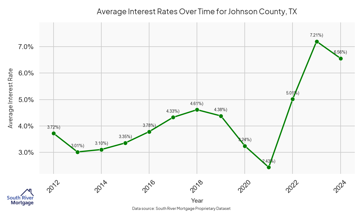 There are approximately 205 active reverse mortgage loans in Johnson County. The average interest rate in Johnson County is 7.6% for reverse mortgages. The average maximum claim amount (the lesser of the appraisal or lending limit), among reverse mortgage borrowers, in Johnson County was $378,750.00 in 2024.