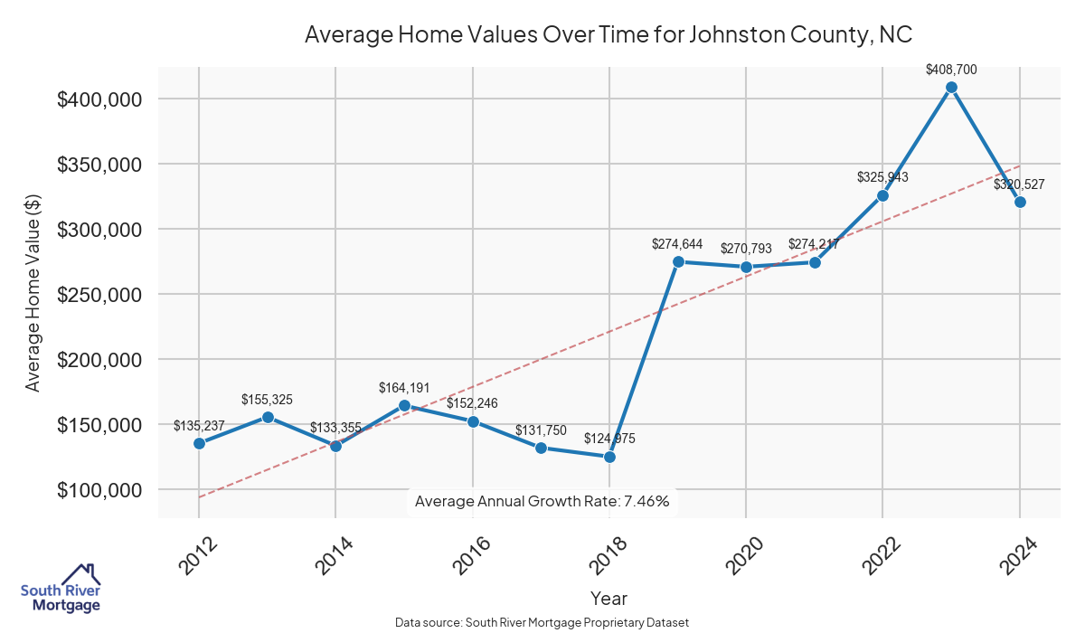 In 2024, there were 193 active reverse mortgage loans in Johnston County, North Carolina. The average home value in Johnston County is $347,331.87.