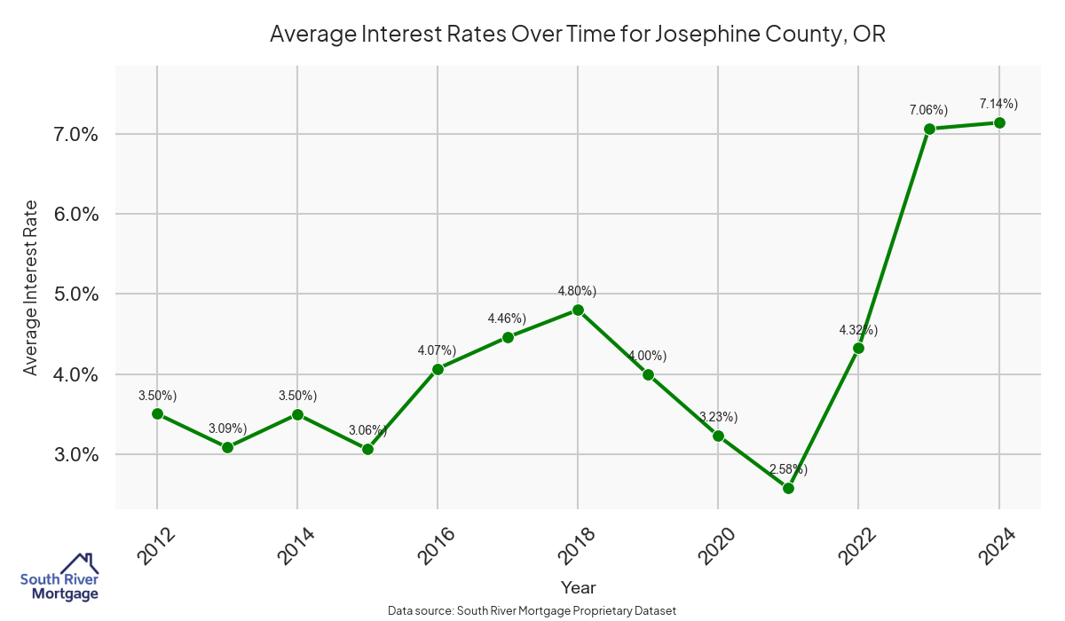 There are approximately 291 active reverse mortgage loans in Josephine County. The average interest rate in Josephine County is 7.06% for reverse mortgages. The average maximum claim amount (the lesser of the appraisal or lending limit), among reverse mortgage borrowers, in Josephine County was $449,848.48 in 2024.