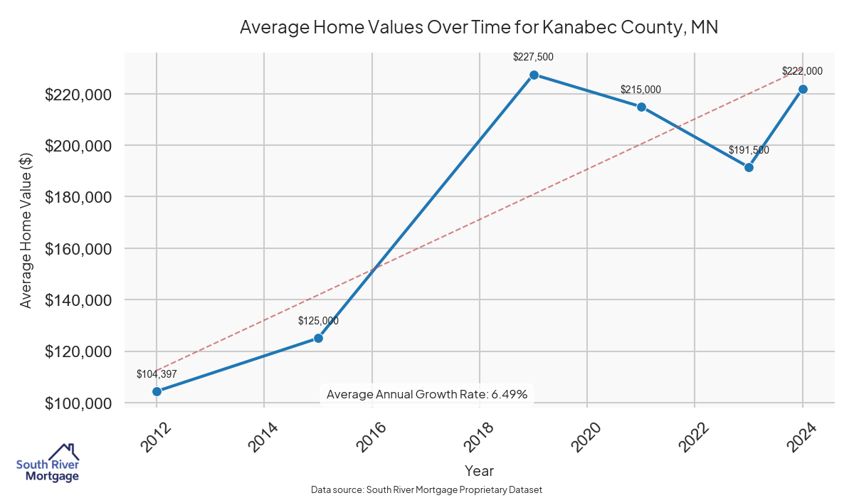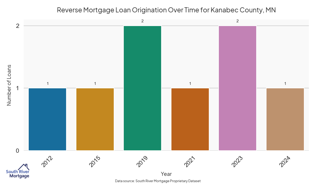 In 2024, there were 8 active reverse mortgage loans in Kanabec County, Minnesota. The average home value in Kanabec County is $321,449.38.