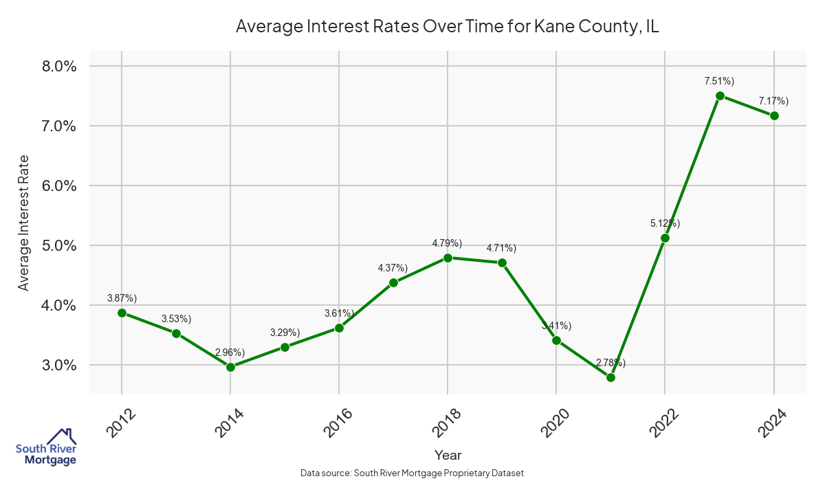 There are approximately 321 active reverse mortgage loans in Kane County. The average interest rate in Kane County is 7.58% for reverse mortgages. The average maximum claim amount (the lesser of the appraisal or lending limit), among reverse mortgage borrowers, in Kane County was $349,800.00 in 2024.