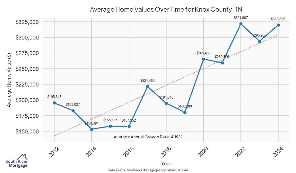 In 2024, there were 491 active reverse mortgage loans in Knox County, Tennessee. The average home value in Knox County is $388,436.95.