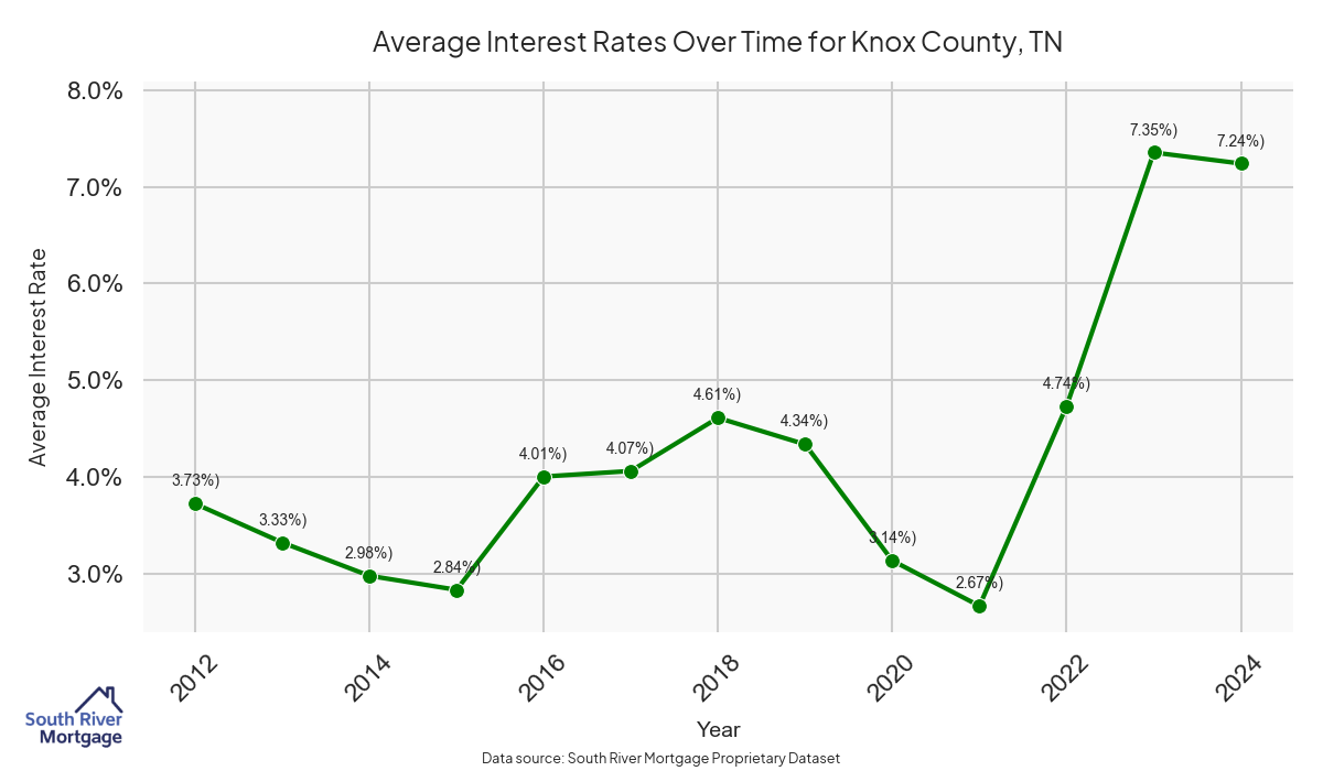 There are approximately 491 active reverse mortgage loans in Knox County. The average interest rate in Knox County is 7.4% for reverse mortgages. The average maximum claim amount (the lesser of the appraisal or lending limit), among reverse mortgage borrowers, in Knox County was $308,584.91 in 2024.
