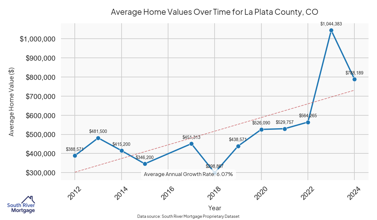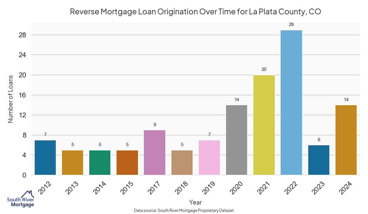 In 2024, there were 120 active reverse mortgage loans in La Plata County, Colorado. The average home value in La Plata County is $857,049.77.