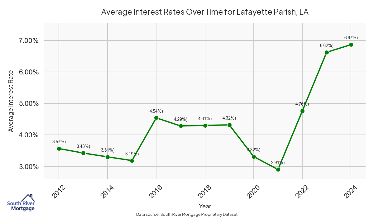 There are approximately 121 active reverse mortgage loans in Lafayette Parish. The average interest rate in Lafayette Parish is 7.95% for reverse mortgages. The average maximum claim amount (the lesser of the appraisal or lending limit), among reverse mortgage borrowers, in Lafayette Parish was $261,250.00 in 2024.