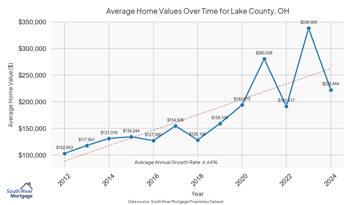 In 2024, there were 141 active reverse mortgage loans in Lake County, Ohio. The average home value in Lake County is $262,546.42.