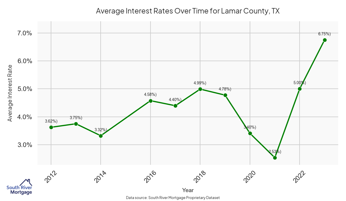 There are approximately 37 active reverse mortgage loans in Lamar County. The average interest rate in Lamar County is 5.08% for reverse mortgages. The average maximum claim amount (the lesser of the appraisal or lending limit), among reverse mortgage borrowers, in Lamar County was $412,500.00 in 2024.