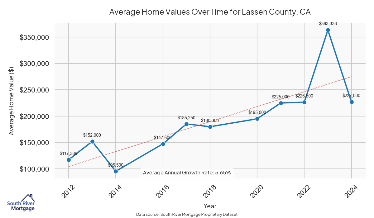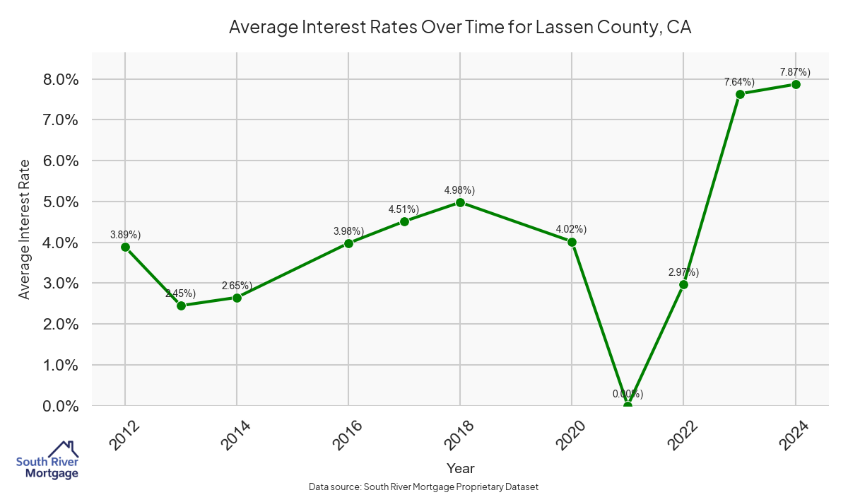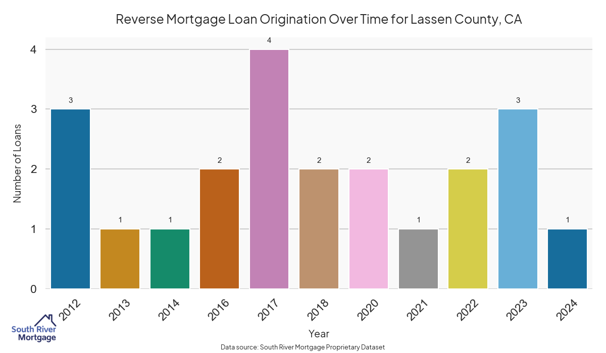 There are approximately 21 active reverse mortgage loans in Lassen County. The average interest rate in Lassen County is 7.07% for reverse mortgages. The average maximum claim amount (the lesser of the appraisal or lending limit), among reverse mortgage borrowers, in Lassen County was $462,500.00 in 2024.