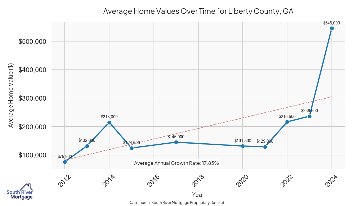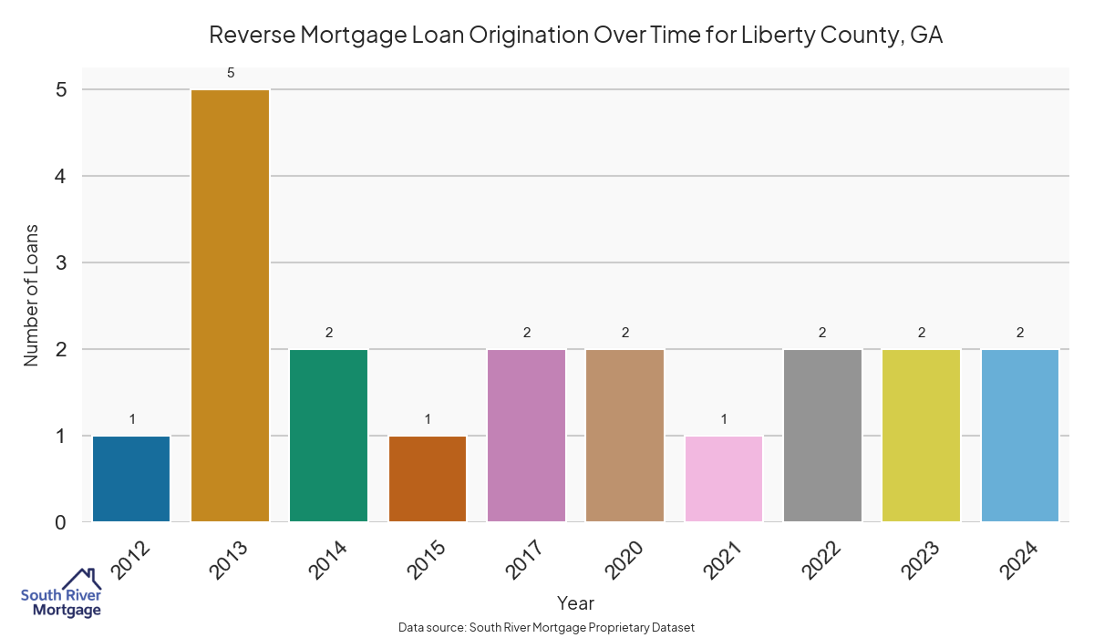 In 2024, there were 20 active reverse mortgage loans in Liberty County, Georgia. The average home value in Liberty County is $267,269.70.