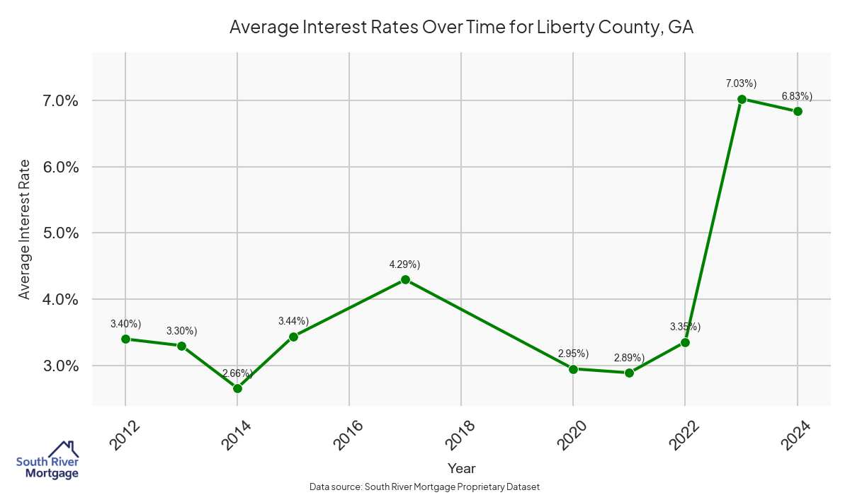 There are approximately 20 active reverse mortgage loans in Liberty County. The average interest rate in Liberty County is 7.64% for reverse mortgages. The average maximum claim amount (the lesser of the appraisal or lending limit), among reverse mortgage borrowers, in Liberty County was $205,000.00 in 2024.