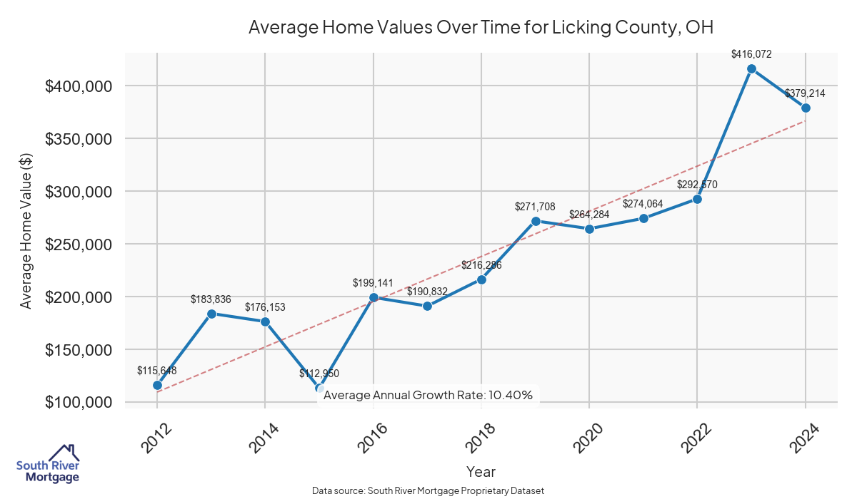 In 2024, there were 171 active reverse mortgage loans in Licking County, Ohio. The average home value in Licking County is $356,218.94.