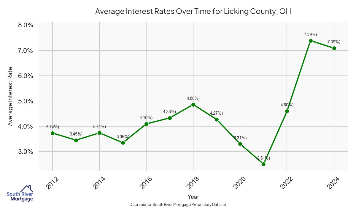 There are approximately 171 active reverse mortgage loans in Licking County. The average interest rate in Licking County is 7.64% for reverse mortgages. The average maximum claim amount (the lesser of the appraisal or lending limit), among reverse mortgage borrowers, in Licking County was $435,454.55 in 2024.