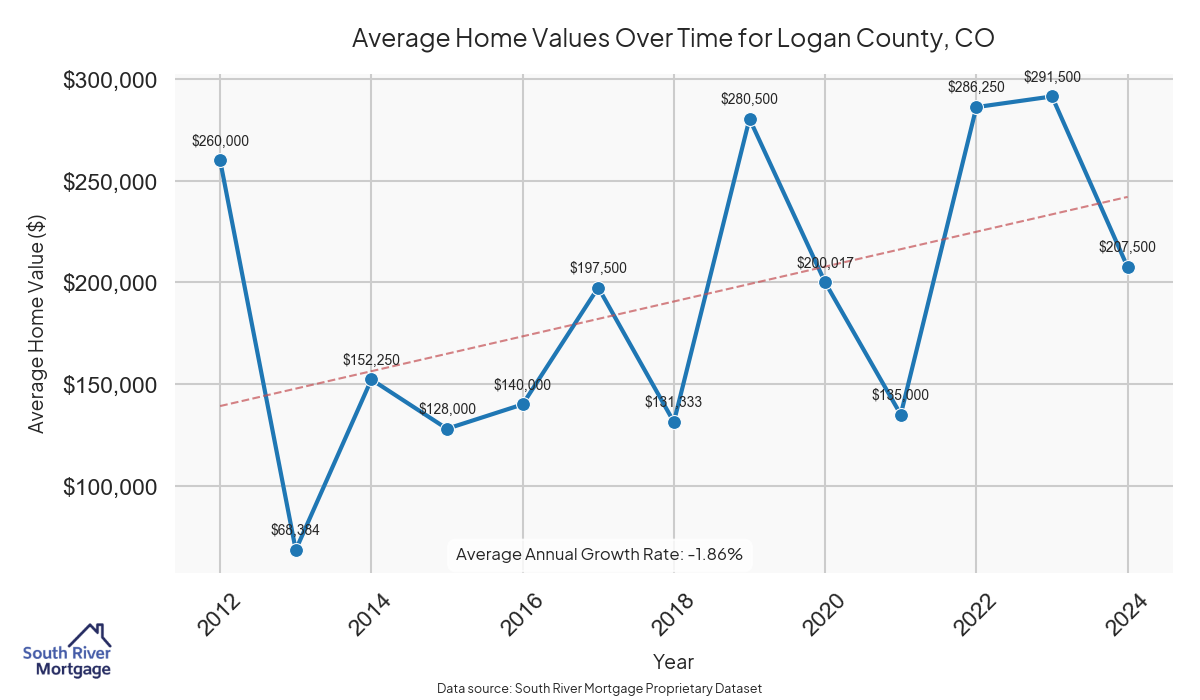 In 2024, there were 29 active reverse mortgage loans in Logan County, Colorado. The average home value in Logan County is $276,879.10.