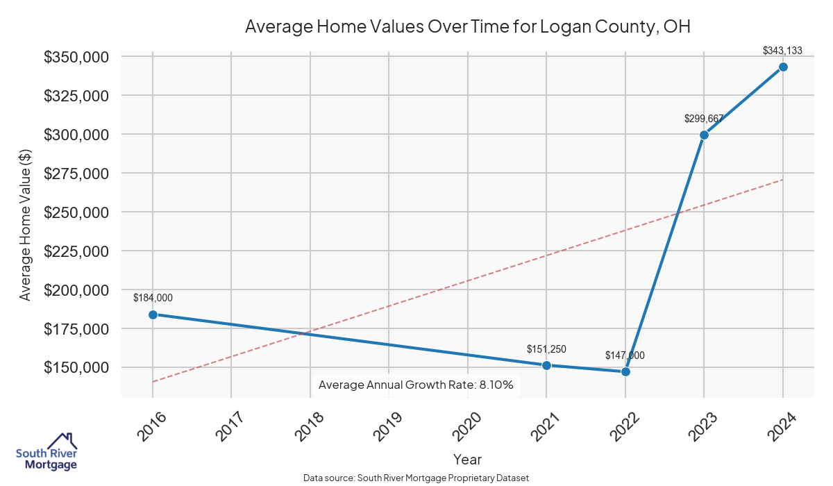 In 2024, there were 19 active reverse mortgage loans in Logan County, Ohio. The average home value in Logan County is $236,478.00.