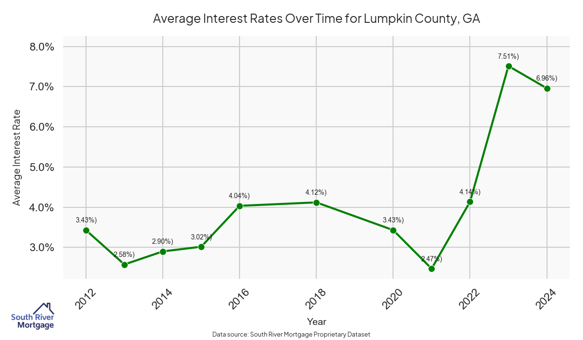 There are approximately 26 active reverse mortgage loans in Lumpkin County. The average interest rate in Lumpkin County is 7.41% for reverse mortgages. The average maximum claim amount (the lesser of the appraisal or lending limit), among reverse mortgage borrowers, in Lumpkin County was $331,000.00 in 2024.