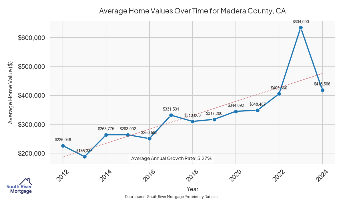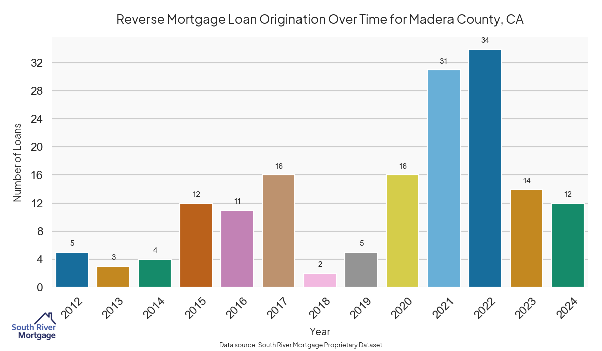 In 2024, there were 153 active reverse mortgage loans in Madera County, California. The average home value in Madera County is $449,199.14.