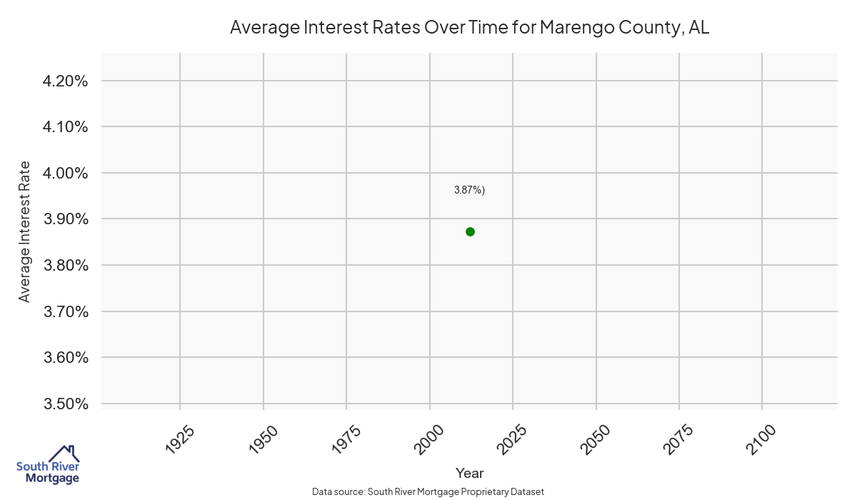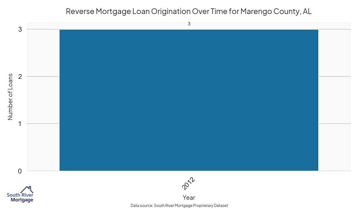 There are approximately 2 active reverse mortgage loans in Marengo County. The average interest rate in Marengo County is 6.86% for reverse mortgages. The average maximum claim amount (the lesser of the appraisal or lending limit), among reverse mortgage borrowers, in Marengo County was $75,000.00 in 2024.
