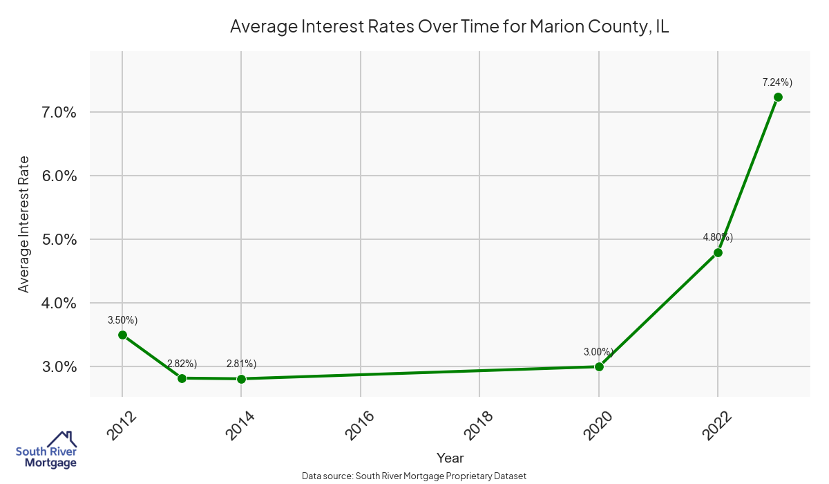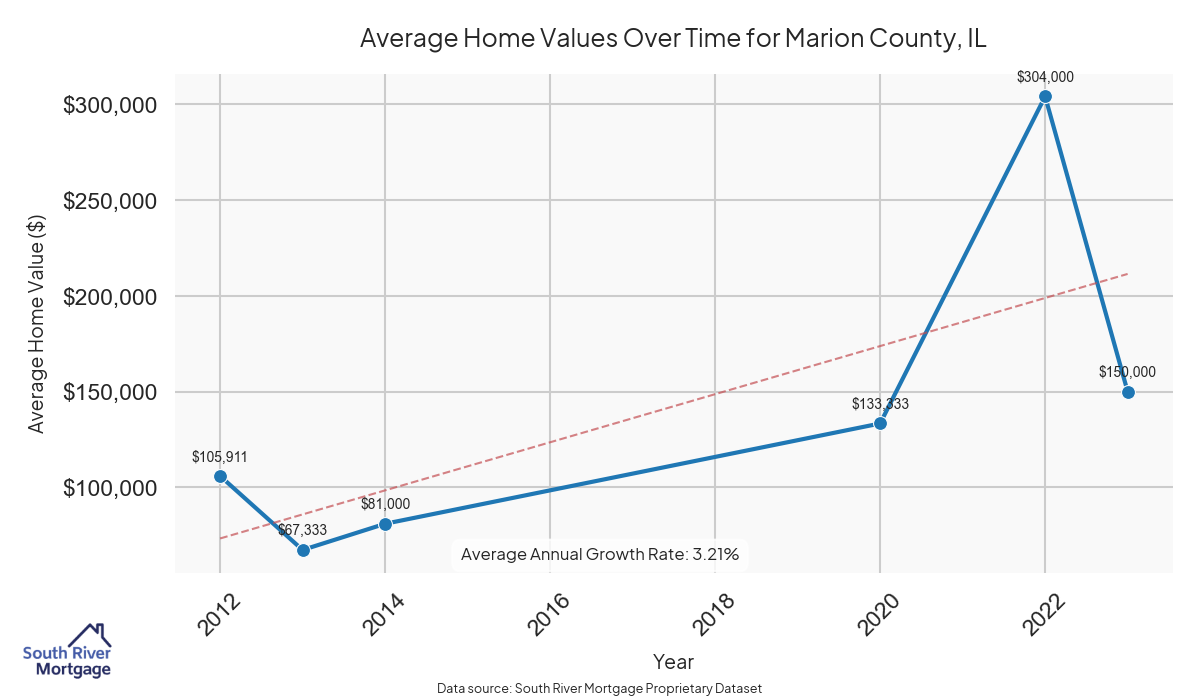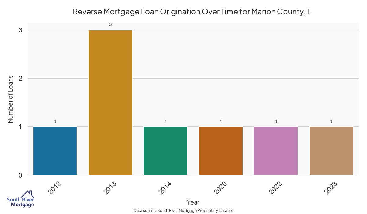 In 2024, there were 7 active reverse mortgage loans in Marion County, Illinois. The average home value in Marion County is $217,858.29.