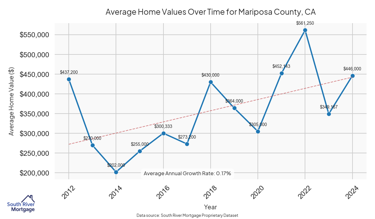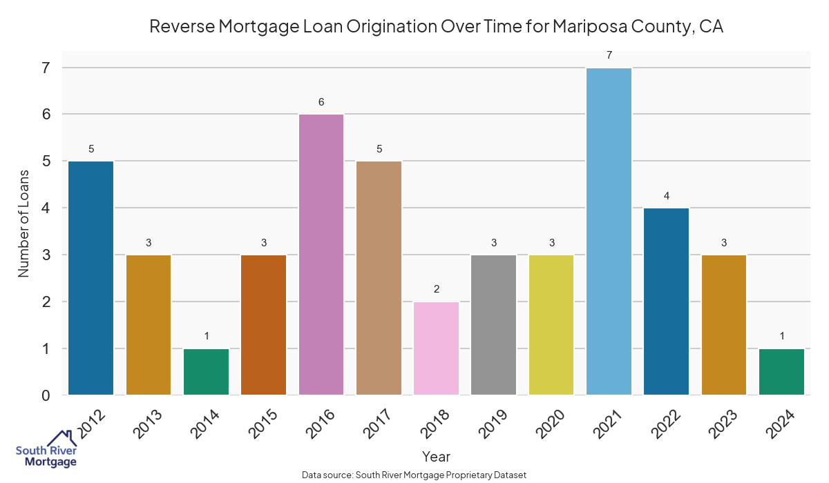 In 2024, there were 44 active reverse mortgage loans in Mariposa County, California. The average home value in Mariposa County is $516,169.09.