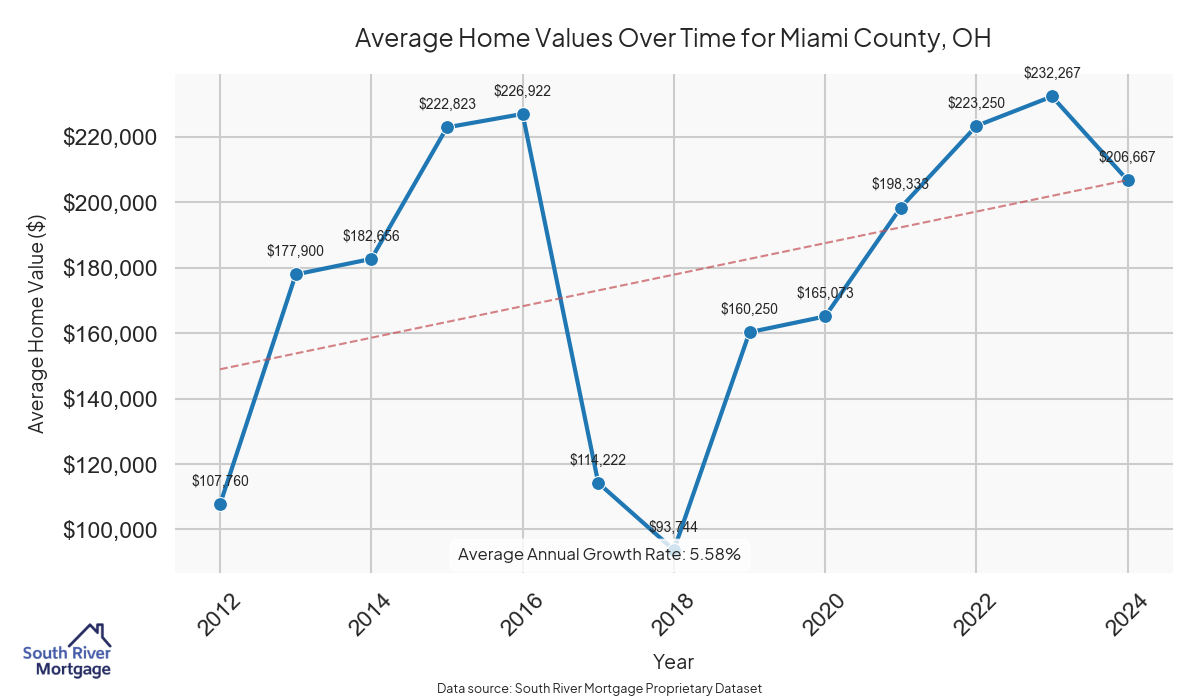 Miami County, located in the state of Ohio, has a population of approximately 102,506. Known for its scenic countryside, charming small towns, and rich history, Miami County offers residents a mix of rural landscapes and urban amenities. The county is renowned for its historic sites, including the Johnston Farm & Indian Agency, a former U.S. Indian agency and farm operated by prominent historical figures. With an average home value of $269,663.86 and an average property tax of $2,389.80, Miami County provides a diverse real estate market for homeowners. Seniors looking to leverage their home equity may find reverse mortgages advantageous in Miami County, especially with the current average interest rate of 4.23%. This financial option allows older homeowners to access the equity in their homes to supplement their income or cover unexpected expenses in retirement.