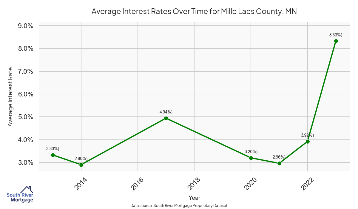 There are approximately 10 active reverse mortgage loans in Mille Lacs County. The average interest rate in Mille Lacs County is 7.72% for reverse mortgages. The average maximum claim amount (the lesser of the appraisal or lending limit), among reverse mortgage borrowers, in Mille Lacs County was $362,500.00 in 2024.