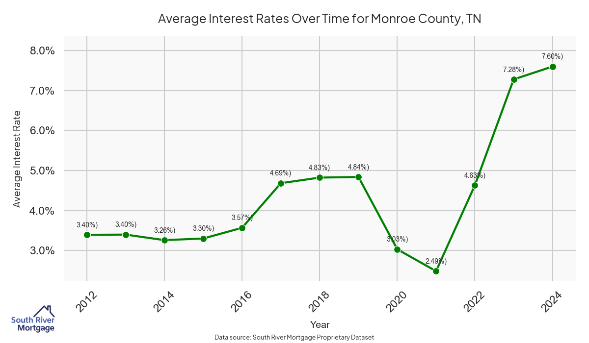 There are approximately 50 active reverse mortgage loans in Monroe County. The average interest rate in Monroe County is 7.45% for reverse mortgages. The average maximum claim amount (the lesser of the appraisal or lending limit), among reverse mortgage borrowers, in Monroe County was $235,000.00 in 2024.