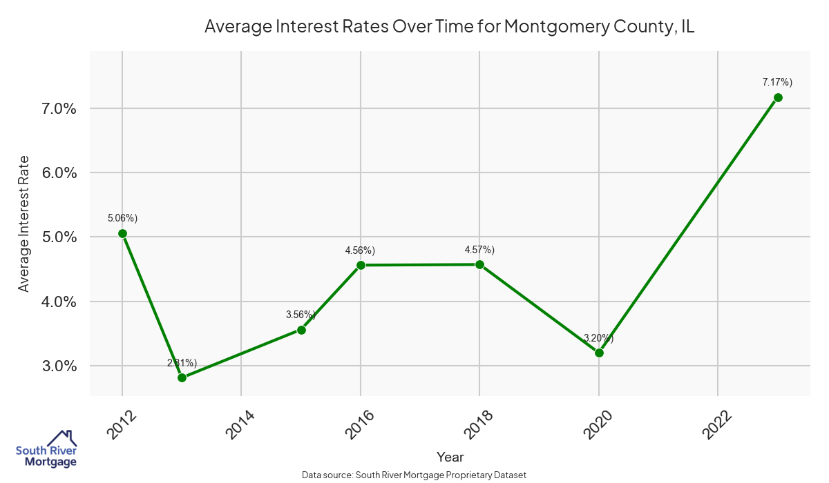 There are approximately 14 active reverse mortgage loans in Montgomery County. The average interest rate in Montgomery County is 7.17% for reverse mortgages. The average maximum claim amount (the lesser of the appraisal or lending limit), among reverse mortgage borrowers, in Montgomery County was $115,000.00 in 2024.