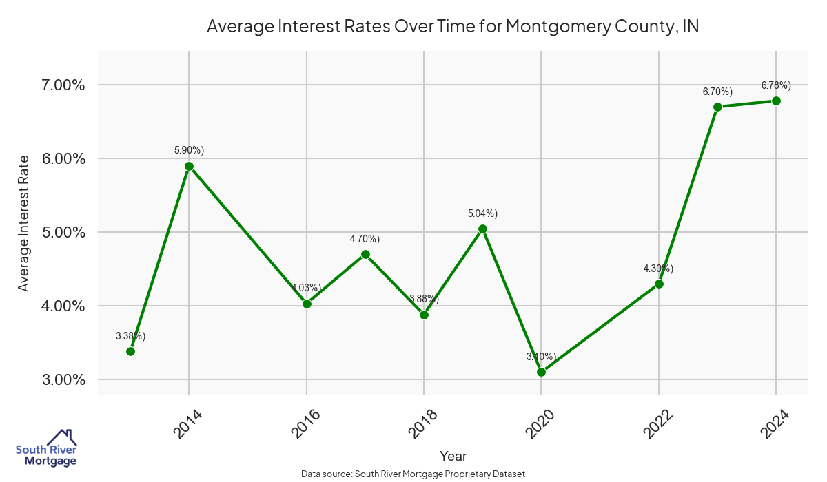 There are approximately 23 active reverse mortgage loans in Montgomery County. The average interest rate in Montgomery County is 7.32% for reverse mortgages. The average maximum claim amount (the lesser of the appraisal or lending limit), among reverse mortgage borrowers, in Montgomery County was $215,000.00 in 2024.