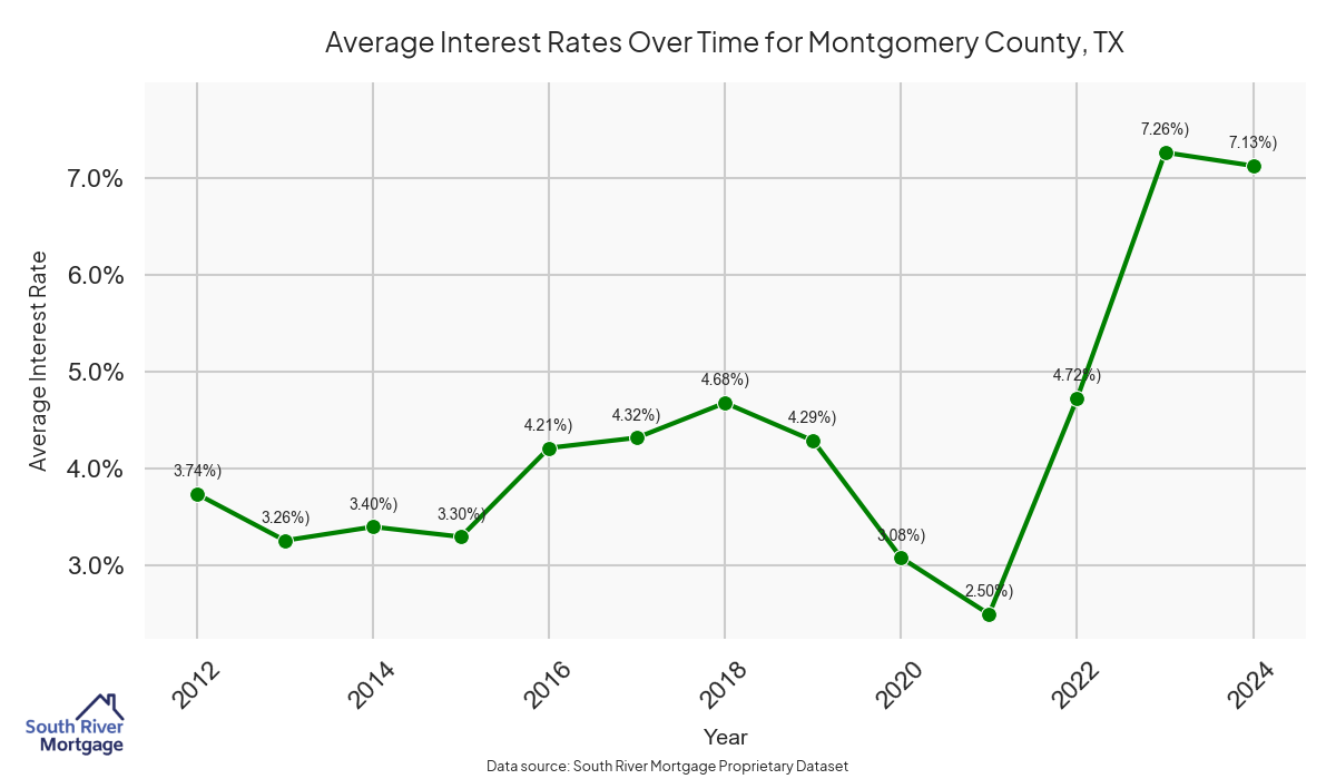 There are approximately 792 active reverse mortgage loans in Montgomery County. The average interest rate in Montgomery County is 7.61% for reverse mortgages. The average maximum claim amount (the lesser of the appraisal or lending limit), among reverse mortgage borrowers, in Montgomery County was $425,112.36 in 2024.