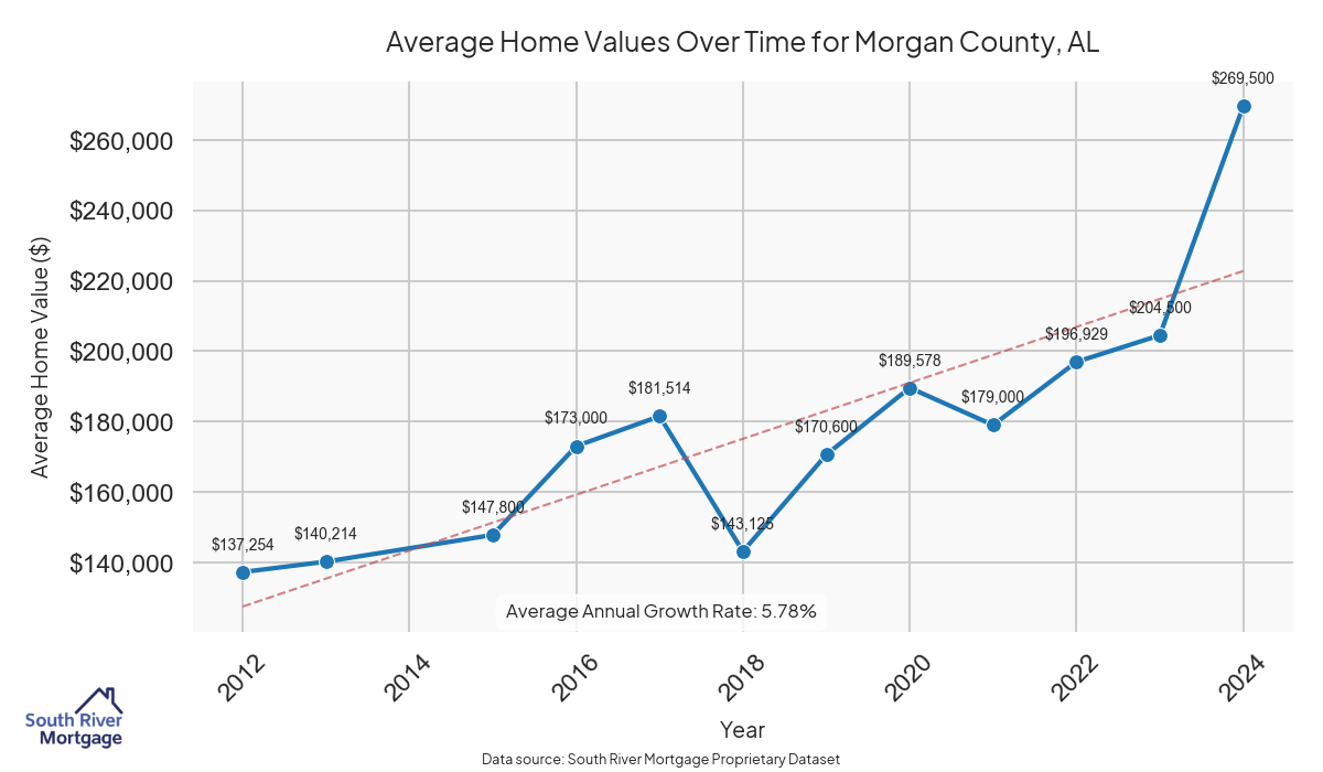 Morgan County, located in Alabama, is home to a diverse population of individuals residing in its picturesque neighborhoods. With an average home value of $243,396.78, the county offers a charming blend of affordability and comfort for its residents. The average property tax in Morgan County is $731.35, ensuring that homeowners can enjoy their properties without breaking the bank. Additionally, the average interest rate of 4.38% makes homeownership a feasible and rewarding investment in this thriving county. Historically, Morgan County holds significance as the site of important Civil War battles and as a hub for rail transportation in the 19th century. Today, the county is known for its scenic beauty, outdoor recreational opportunities, and welcoming community spirit. Seniors in Morgan County may benefit from exploring reverse mortgages, a financial tool that allows homeowners aged 62 and older to convert a portion of their home equity into cash. This can be a valuable resource for those looking to supplement their retirement income or cover unexpected expenses while continuing to reside in their beloved homes.