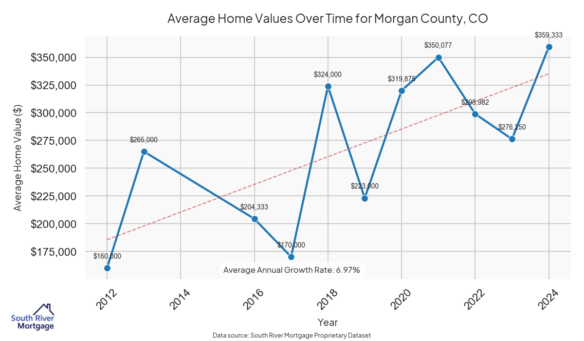 In 2024, there were 56 active reverse mortgage loans in Morgan County, Colorado. The average home value in Morgan County is $401,415.64.