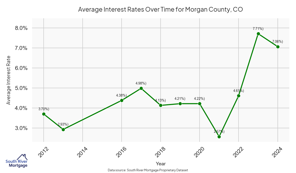 There are approximately 56 active reverse mortgage loans in Morgan County. The average interest rate in Morgan County is 7.36% for reverse mortgages. The average maximum claim amount (the lesser of the appraisal or lending limit), among reverse mortgage borrowers, in Morgan County was $326,666.67 in 2024.