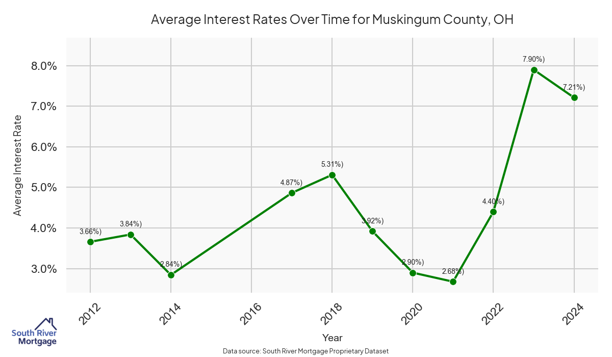 There are approximately 36 active reverse mortgage loans in Muskingum County. The average interest rate in Muskingum County is 7.18% for reverse mortgages. The average maximum claim amount (the lesser of the appraisal or lending limit), among reverse mortgage borrowers, in Muskingum County was $255,000.00 in 2024.