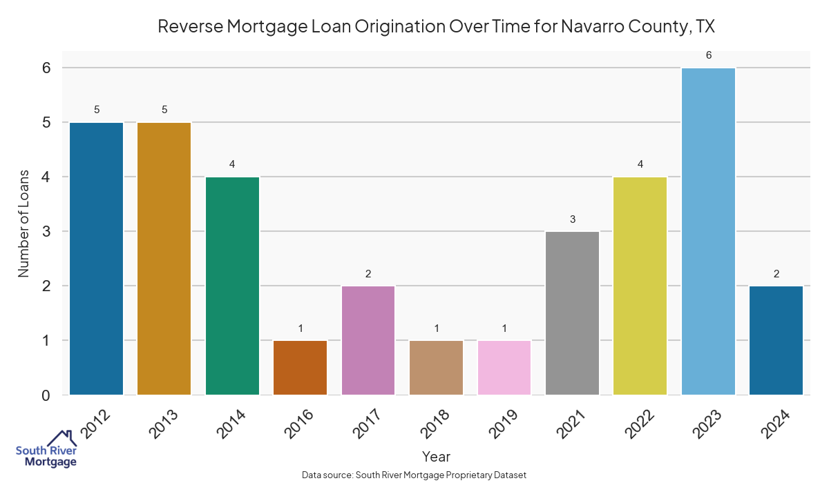 There are approximately 33 active reverse mortgage loans in Navarro County. The average interest rate in Navarro County is 7.59% for reverse mortgages. The average maximum claim amount (the lesser of the appraisal or lending limit), among reverse mortgage borrowers, in Navarro County was $445,000.00 in 2024.