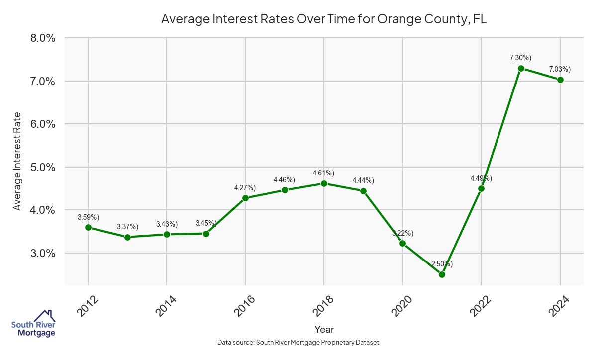 There are approximately 1180 active reverse mortgage loans in Orange County. The average interest rate in Orange County is 7.37% for reverse mortgages. The average maximum claim amount (the lesser of the appraisal or lending limit), among reverse mortgage borrowers, in Orange County was $464,294.87 in 2024.