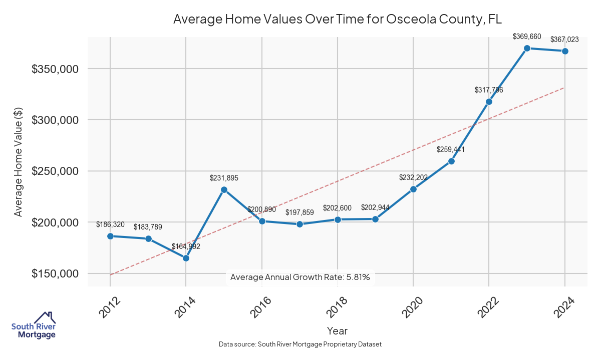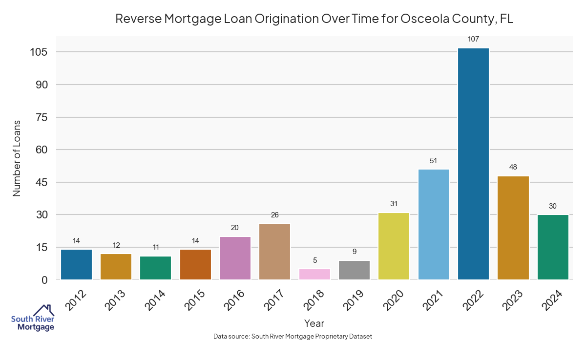 In 2024, there were 376 active reverse mortgage loans in Osceola County, Florida. The average home value in Osceola County is $409,396.43.