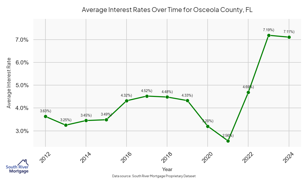 There are approximately 376 active reverse mortgage loans in Osceola County. The average interest rate in Osceola County is 7.41% for reverse mortgages. The average maximum claim amount (the lesser of the appraisal or lending limit), among reverse mortgage borrowers, in Osceola County was $400,200.00 in 2024.
