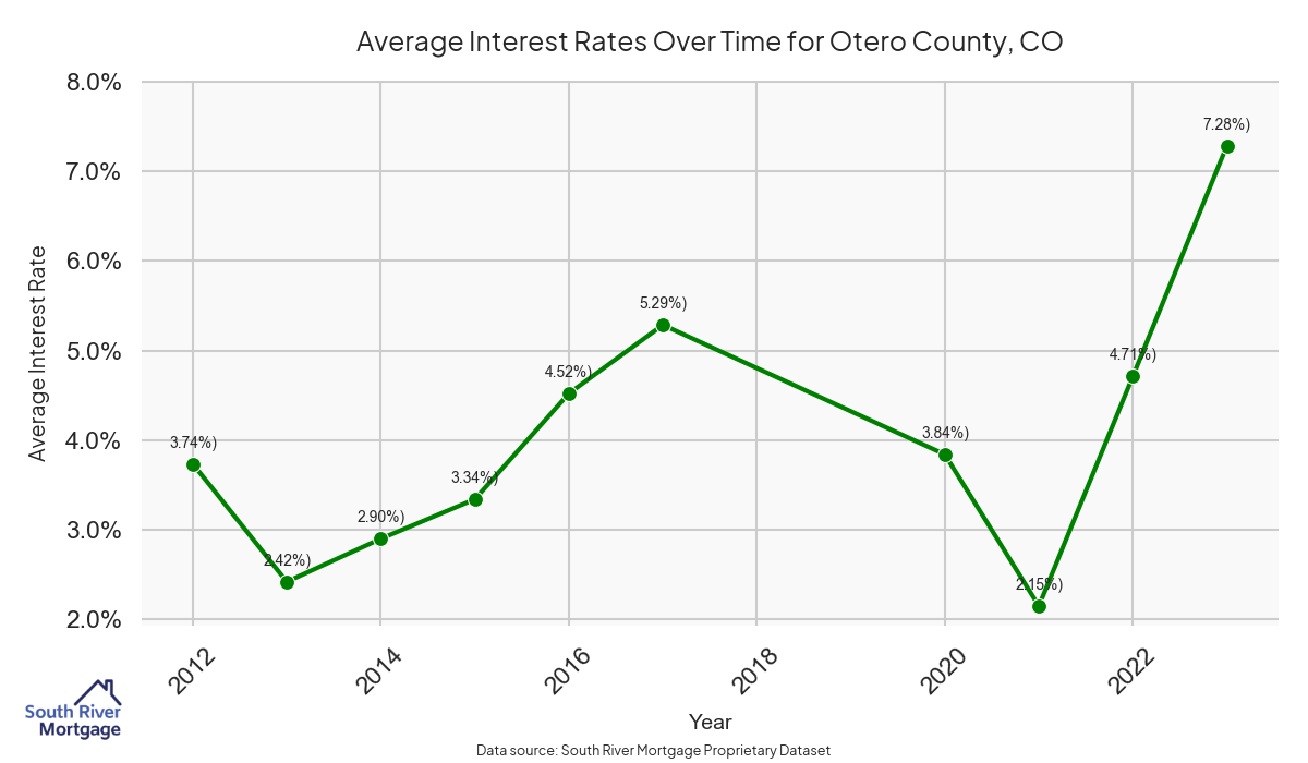 There are approximately 25 active reverse mortgage loans in Otero County. The average interest rate in Otero County is 7.26% for reverse mortgages. The average maximum claim amount (the lesser of the appraisal or lending limit), among reverse mortgage borrowers, in Otero County was $197,500.00 in 2024.