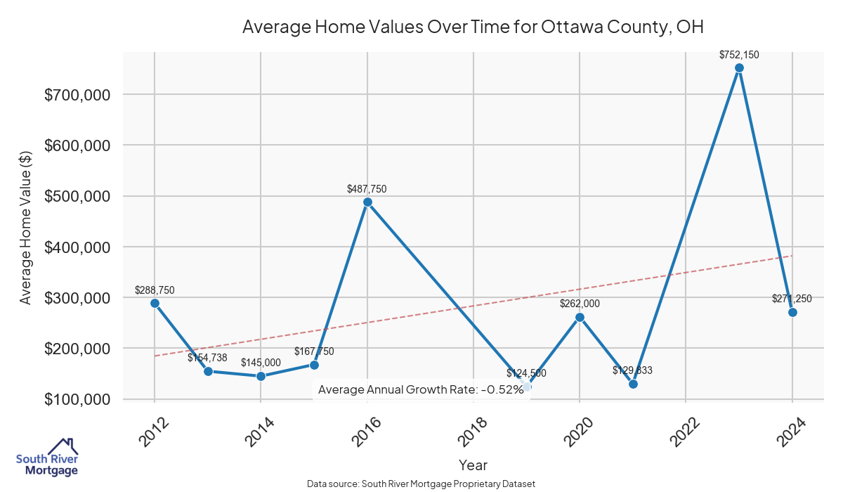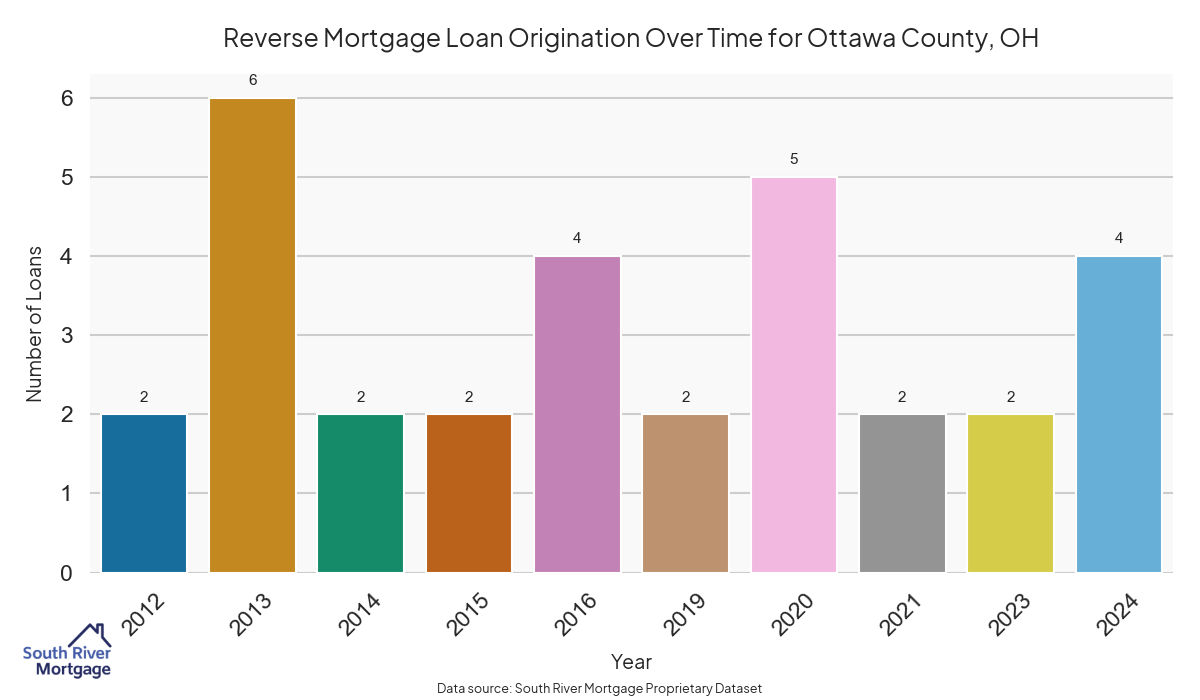 In 2024, there were 30 active reverse mortgage loans in Ottawa County, Ohio. The average home value in Ottawa County is $427,362.53.