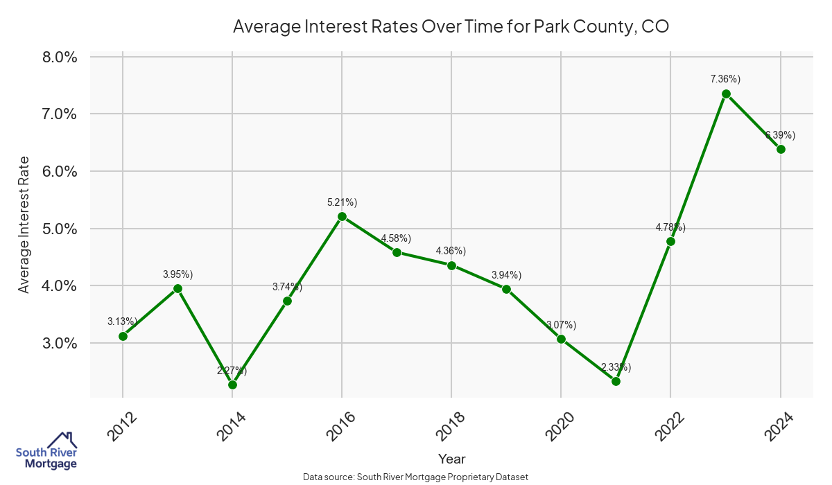 There are approximately 110 active reverse mortgage loans in Park County. The average interest rate in Park County is 7.45% for reverse mortgages. The average maximum claim amount (the lesser of the appraisal or lending limit), among reverse mortgage borrowers, in Park County was $519,545.45 in 2024.