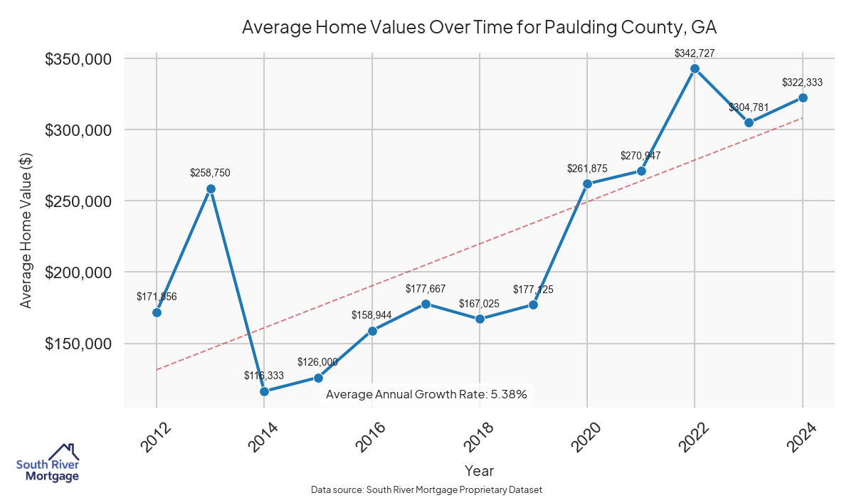 Located in the state of Georgia, Paulding County is a growing community known for its strong sense of community and natural beauty. With a population of approximately 168,667 residents, the county offers a mixture of suburban and rural living, making it an ideal place for families and individuals looking for a peaceful yet convenient lifestyle. Paulding County boasts a moderate climate, with warm summers and mild winters, making it an attractive destination for those seeking a comfortable living environment. Throughout its history, Paulding County has been shaped by its agricultural roots and proximity to Atlanta, giving it a unique blend of rural charm and urban opportunities. The county is known for its historic sites, including the remnants of the Western and Atlantic Railroad and Civil War-era landmarks. For seniors interested in unlocking the equity in their homes, Paulding County offers various options, including reverse mortgages. With an average home value of $358,568.86, an average property tax of $1,280.12, and an average interest rate of 4.71%, seniors can leverage the value of their homes to support their retirement years comfortably.