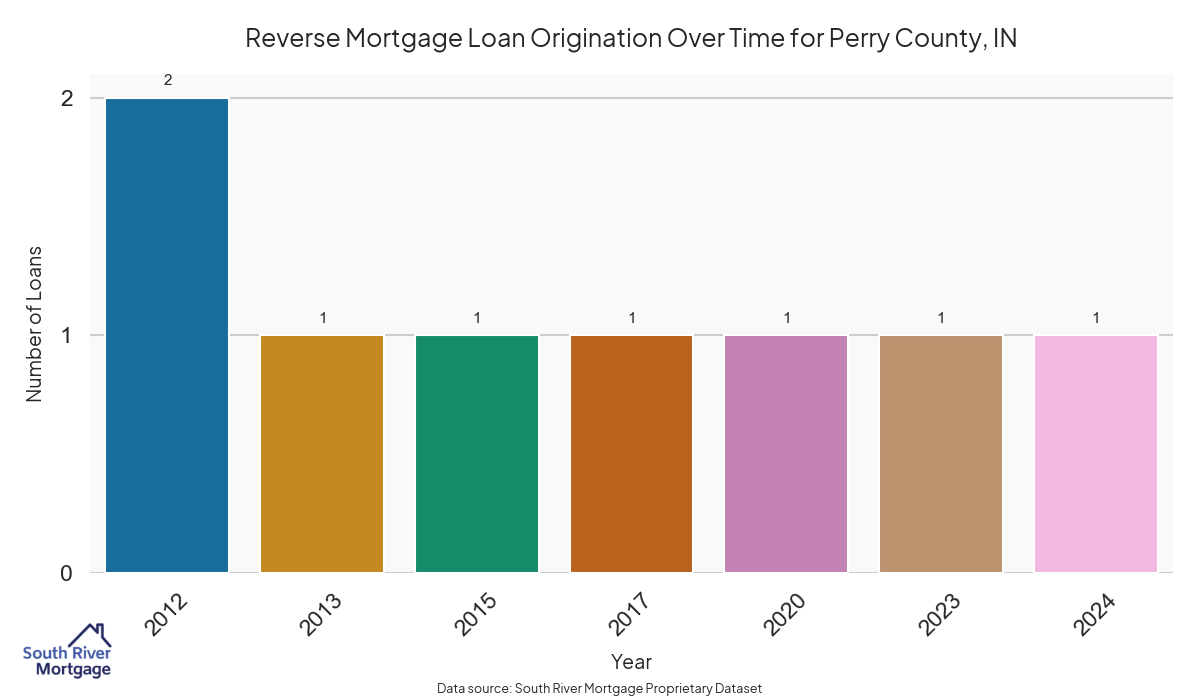 In 2024, there were 7 active reverse mortgage loans in Perry County, Indiana. The average home value in Perry County is $192,820.43.