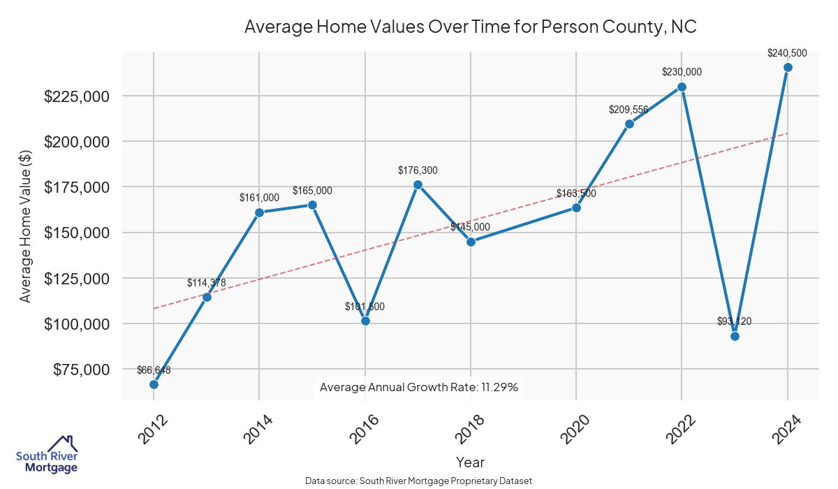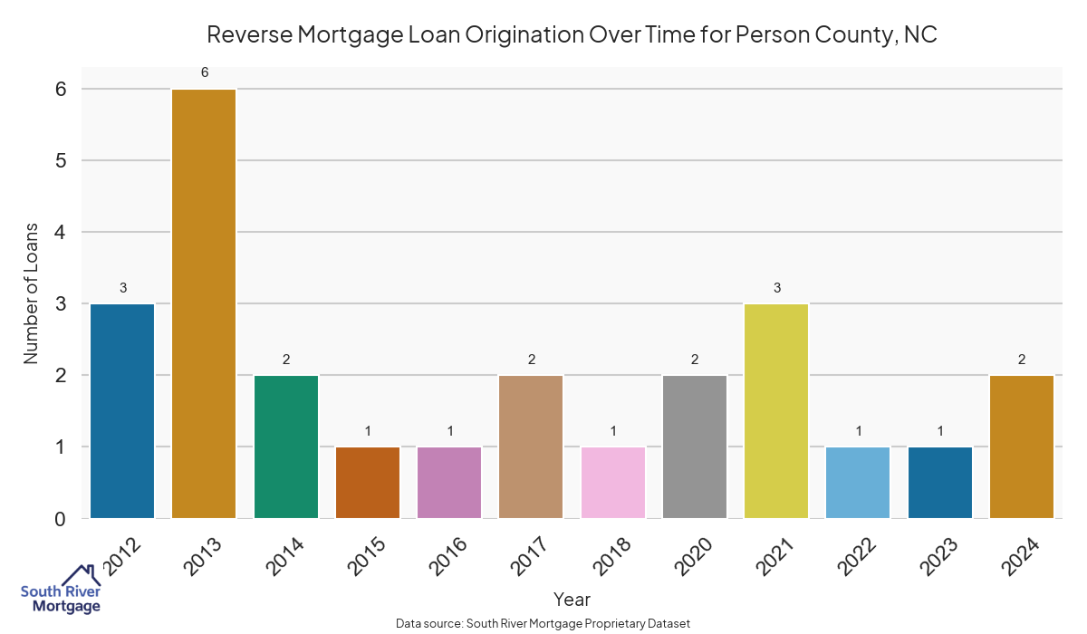 In 2024, there were 24 active reverse mortgage loans in Person County, North Carolina. The average home value in Person County is $280,837.33.
