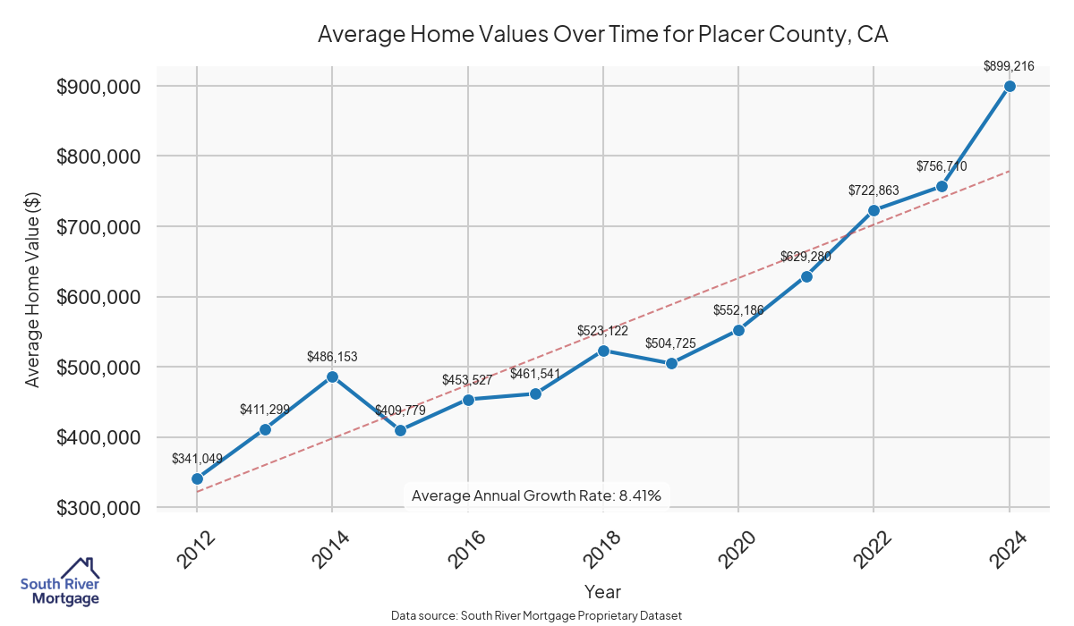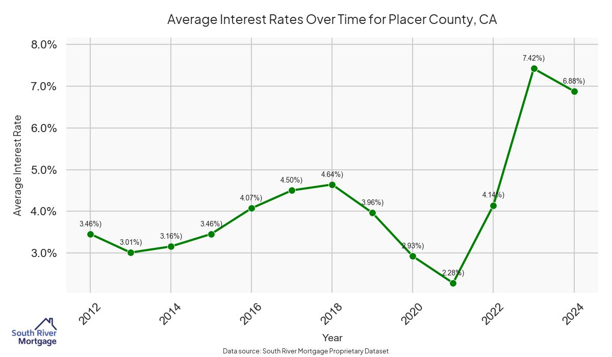 There are approximately 1403 active reverse mortgage loans in Placer County. The average interest rate in Placer County is 7.57% for reverse mortgages. The average maximum claim amount (the lesser of the appraisal or lending limit), among reverse mortgage borrowers, in Placer County was $749,070.80 in 2024.