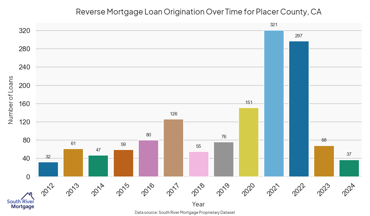 In 2024, there were 1403 active reverse mortgage loans in Placer County, California. The average home value in Placer County is $672,924.54.