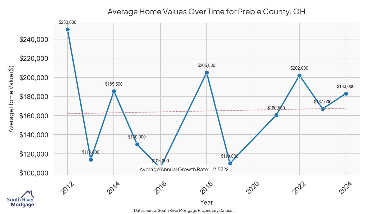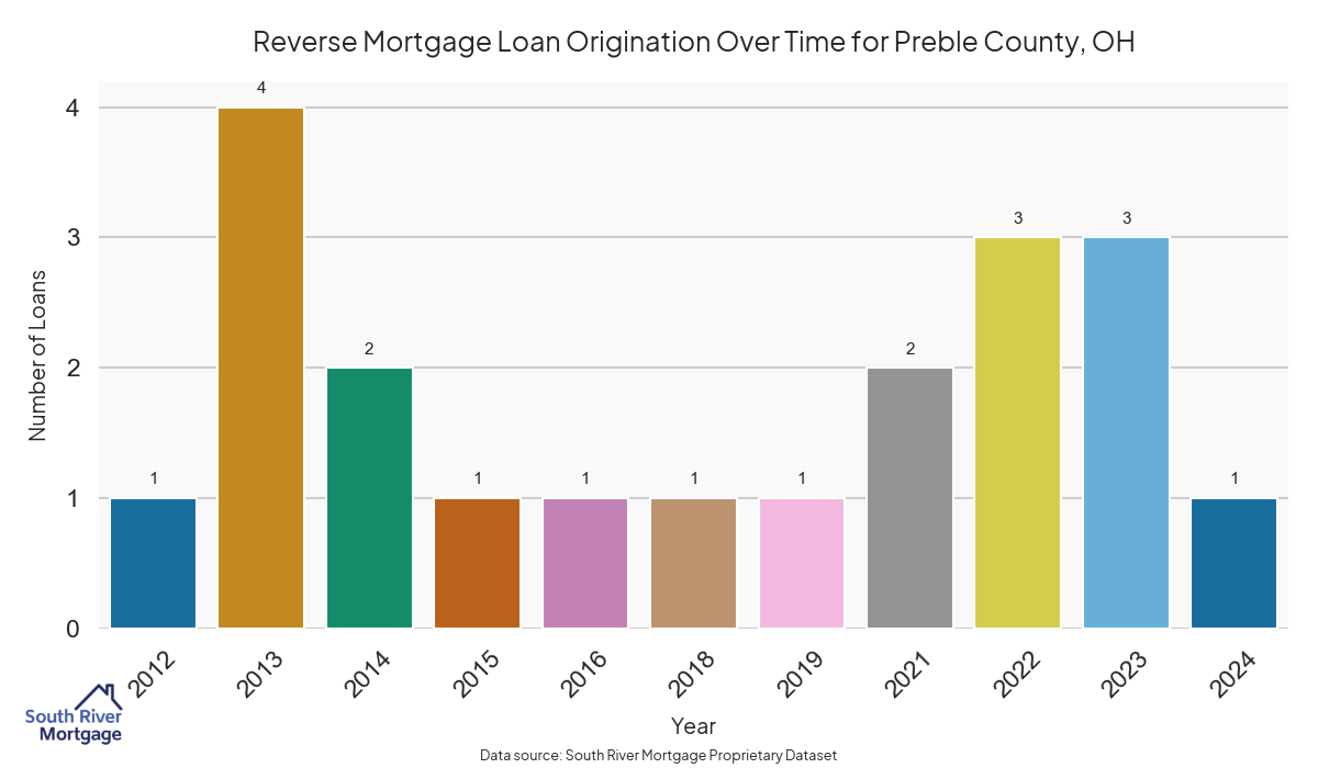 In 2024, there were 19 active reverse mortgage loans in Preble County, Ohio. The average home value in Preble County is $248,351.37.