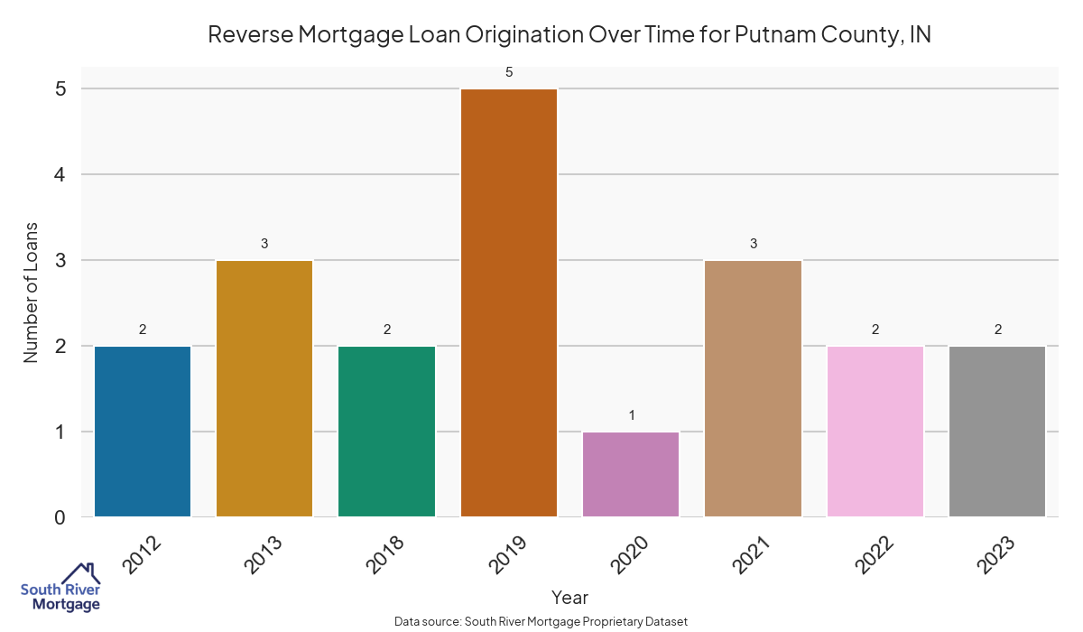 In 2024, there were 19 active reverse mortgage loans in Putnam County, Indiana. The average home value in Putnam County is $320,712.16.