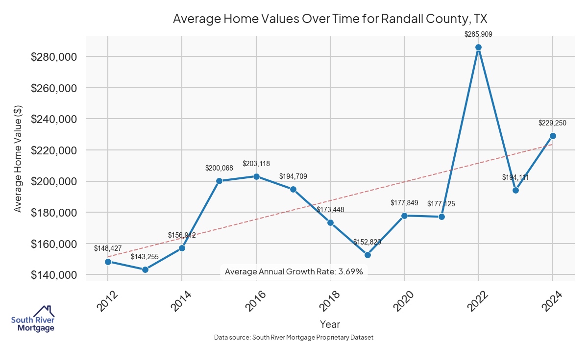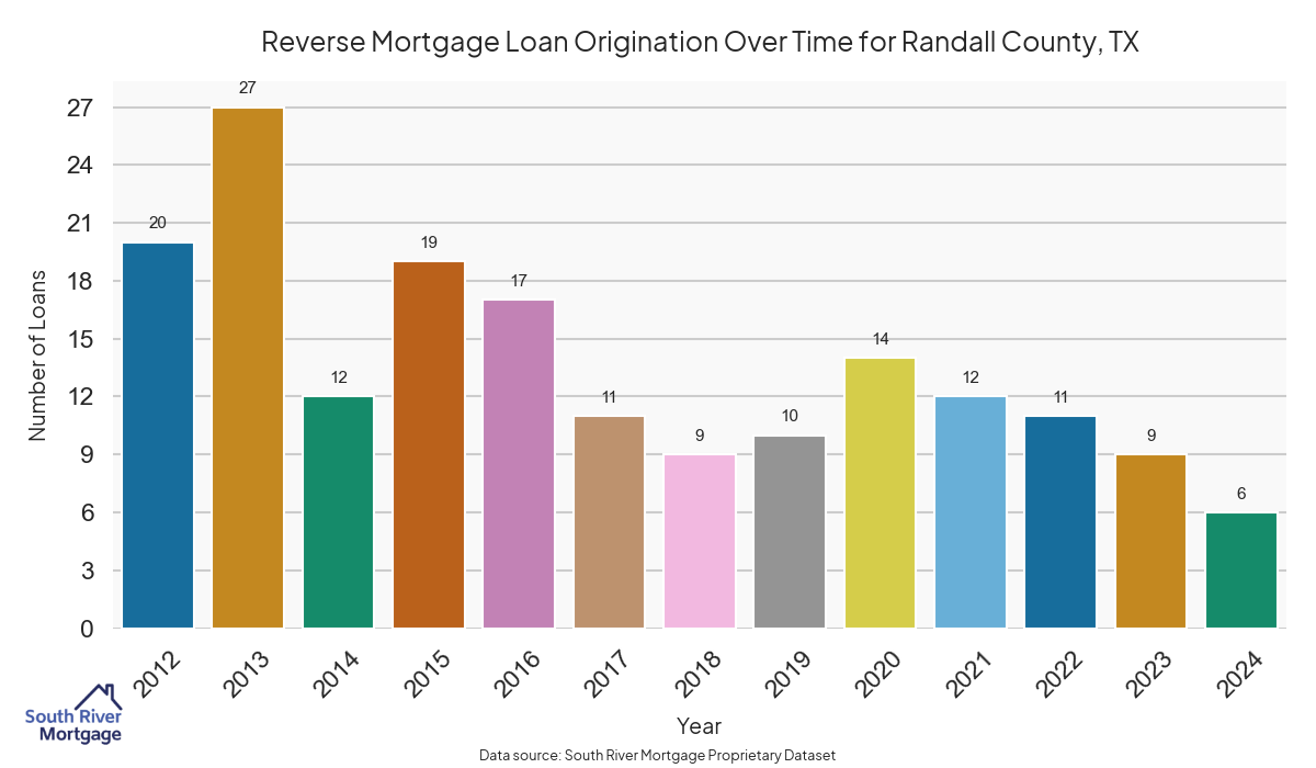 In 2024, there were 177 active reverse mortgage loans in Randall County, Texas. The average home value in Randall County is $274,808.28.